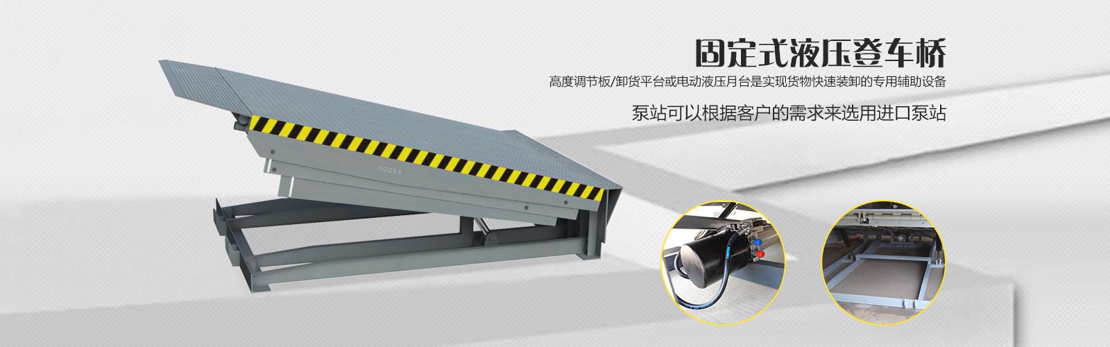 固定式液壓登車橋是實現貨物快速裝卸的專用輔助設備,安裝在月臺、建筑物上,搭接于貨車車廂,調節月臺、建筑物地面與車廂之間的高度差
